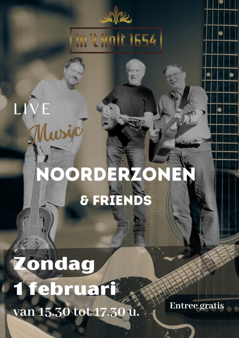 Volgende week zondagmiddag 1 februari spelen de Noorderzonen bij ons in het Grand Café. Reinout van der Veen, Ben Bentz en Hans van Loon spelen semi-akoestische Americana/Folk/Blues nummers van o.a. J.J. Cale, Doc Watson, Johnny Cash, Pink Floyd en vele andere, samen met Friends: Bas van vliet en Jolien Hagens. Dat wordt een gezellige middag, je bent van harte welkom!